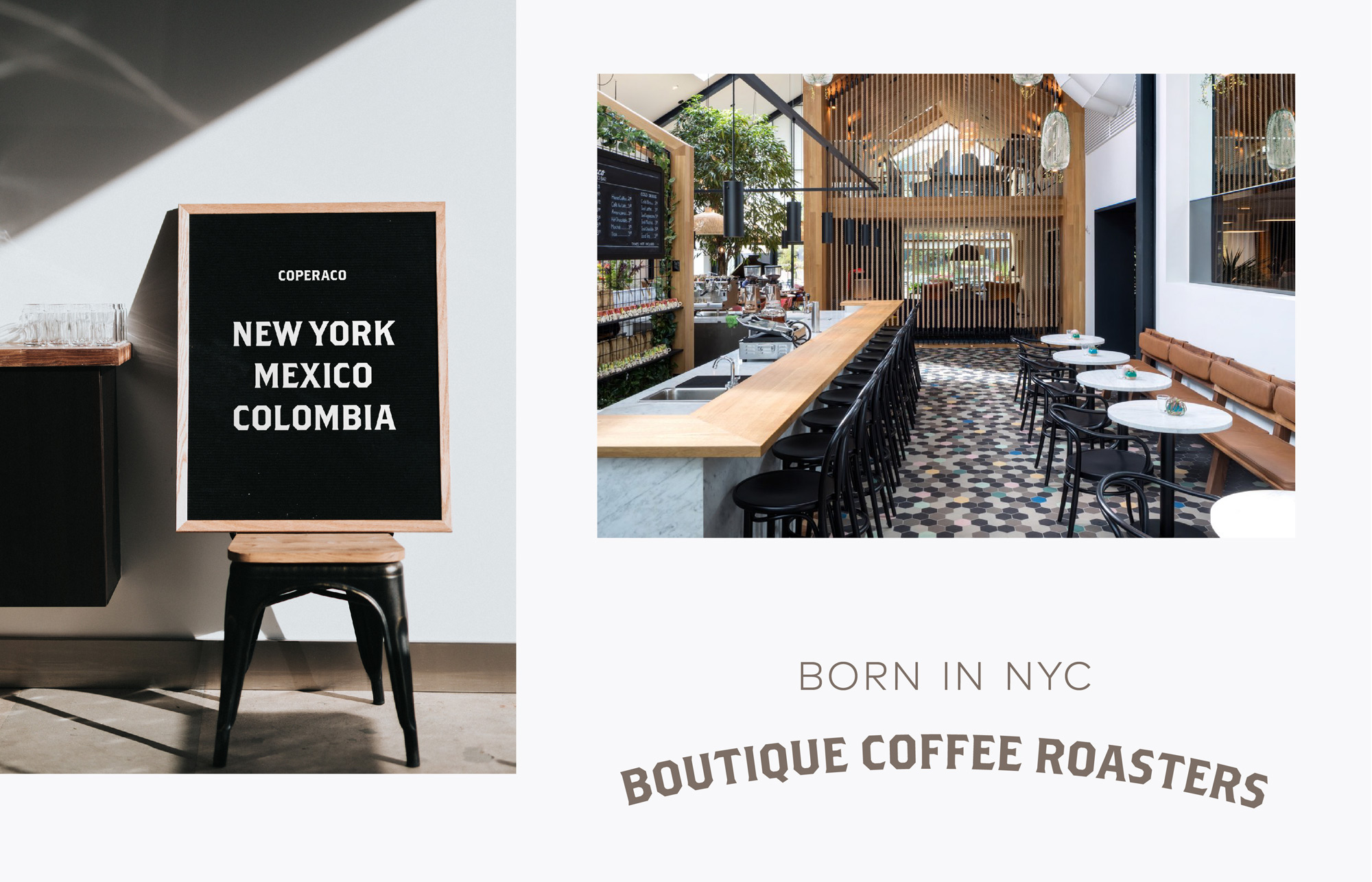 Coperaco is a boutique coffee roaster company operating in New York, Mexico and Colombia. Their new cafe in New York creates an idyllic sanctuary where patrons can savor the high-quality, carefully-roasted brew.